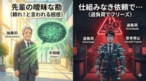 「いつでも相談して」という一見優しい言葉は、部下の「脳メモリ」を裏で大量に消費させます 。スクリプトがあれば、「AならBをする」という明確な分岐により、上司の顔色を伺う必要がなくなり、思考フリーズを防げます。